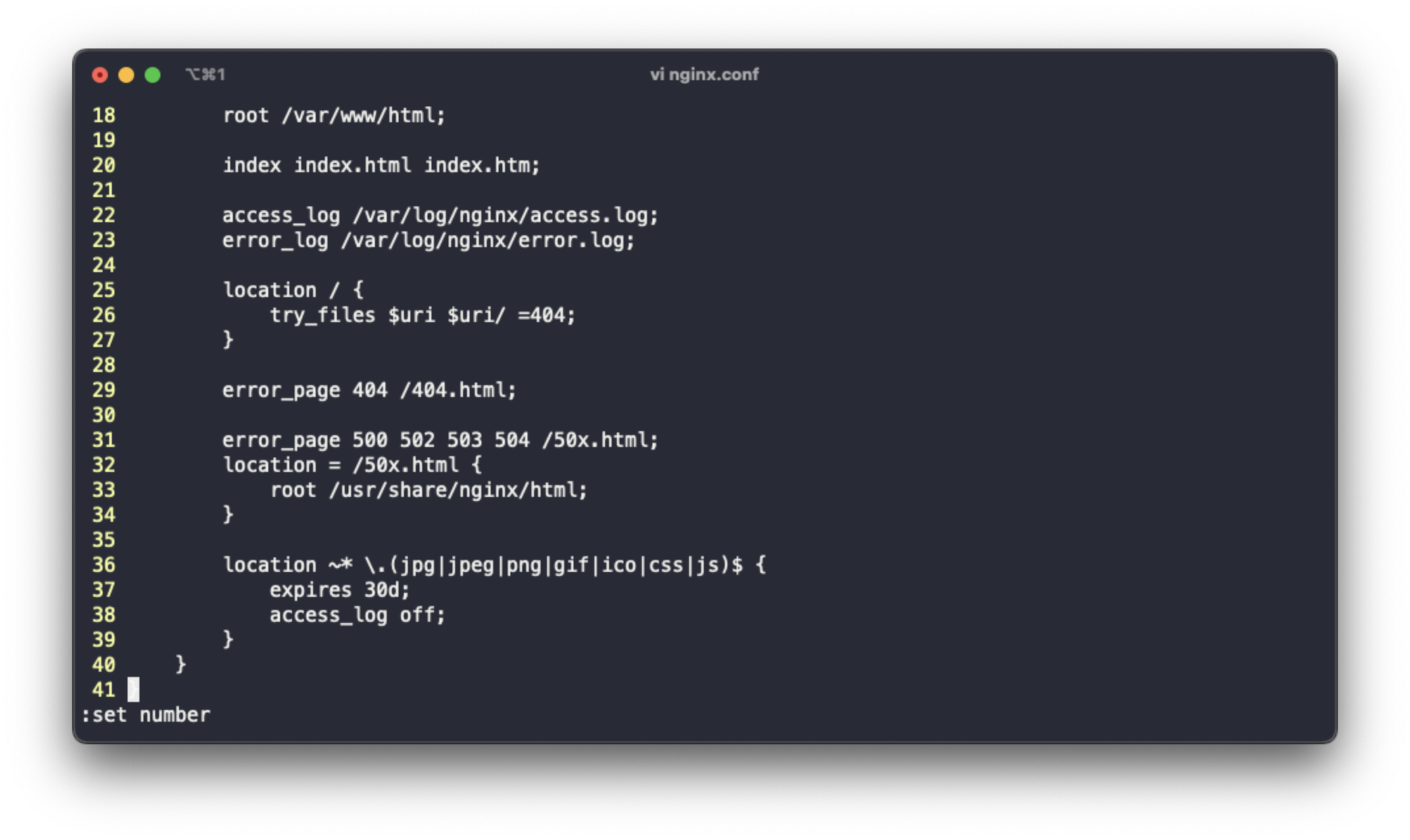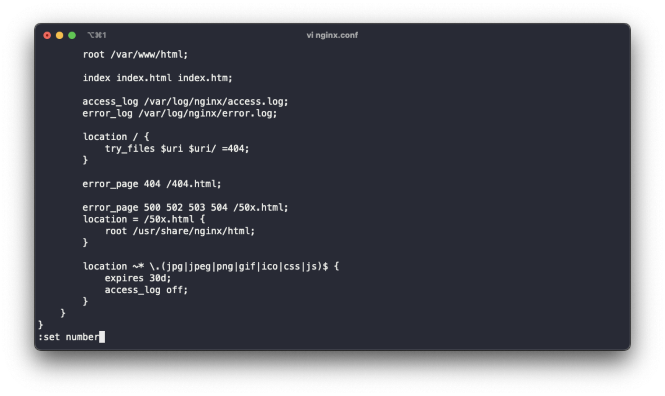 참고) set number 명령어로 터미널에 번호를 표시할 수 있습니다.