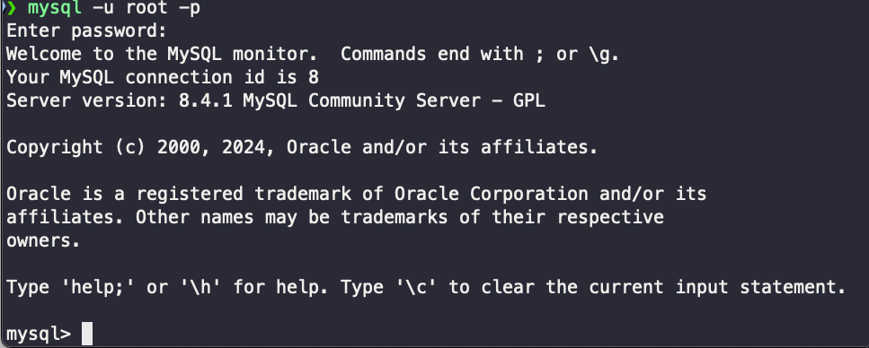 터미널에서 아래 명령어로 mysql이 설치되었는지 확인해봅시다.