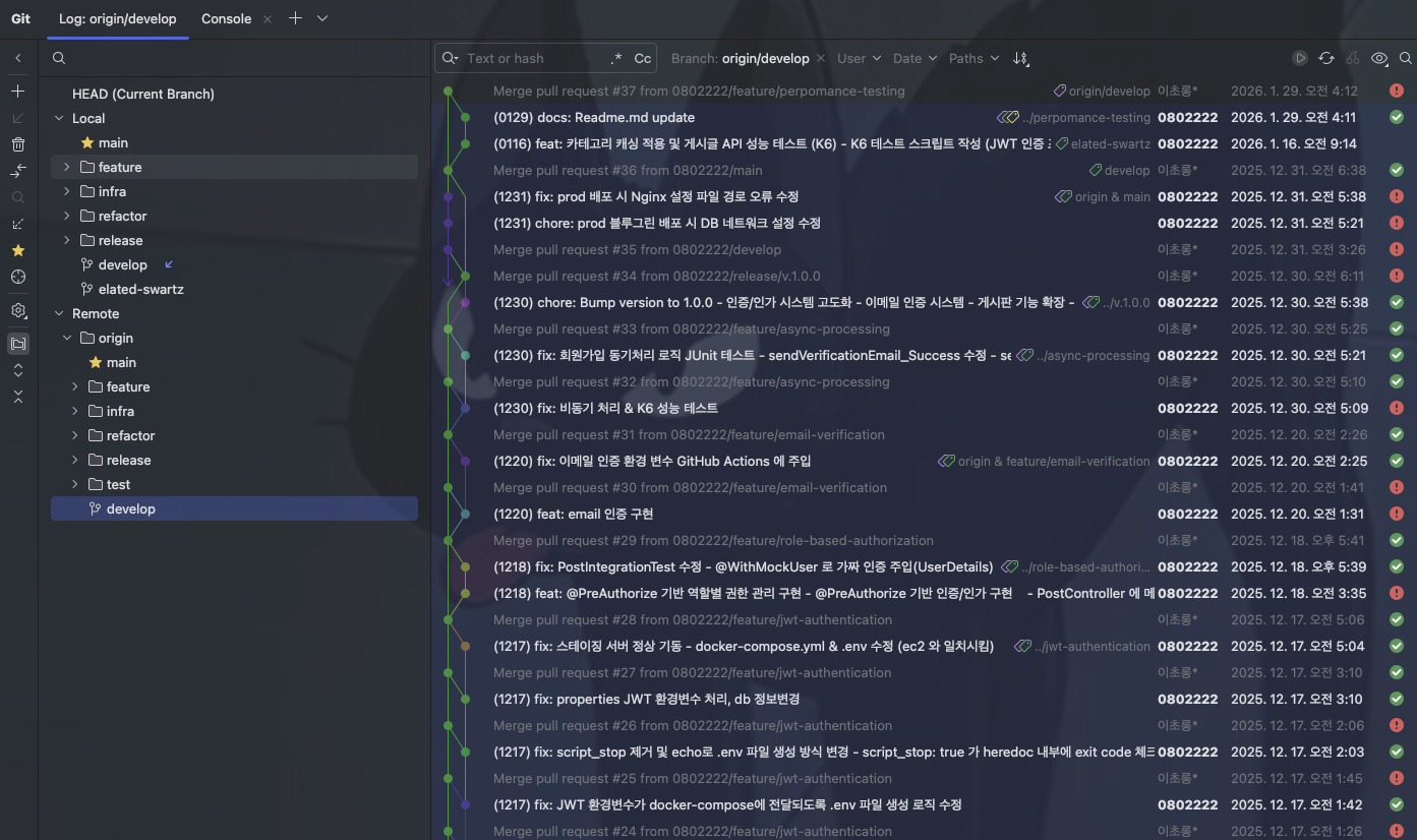 게시판 프로젝트로 총 89개의 커밋과 19개의 블로그글을 작성했습니다. 2025년중에 이때 가장 성장했다고 느꼈습니다.